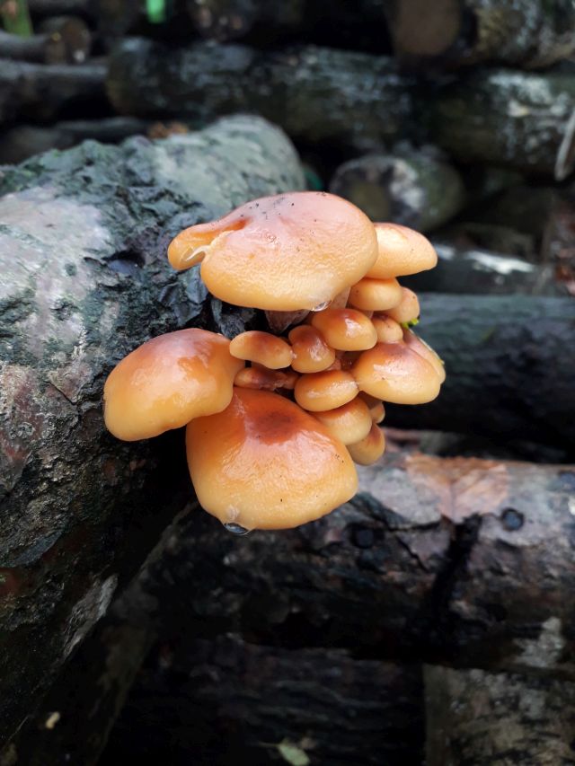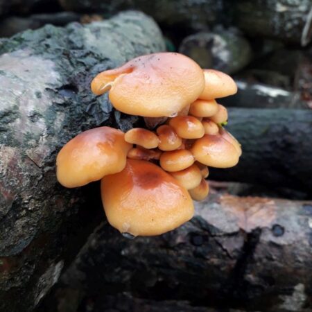 * Fluweelpootjes zijn egaal geel oranje van kleur, de hoeden zijn een beetje plakkerig; de lamellen aan de onderkant iets lichter van kleur, lange dunne donker gekleurde zachte stelen zonder een ring